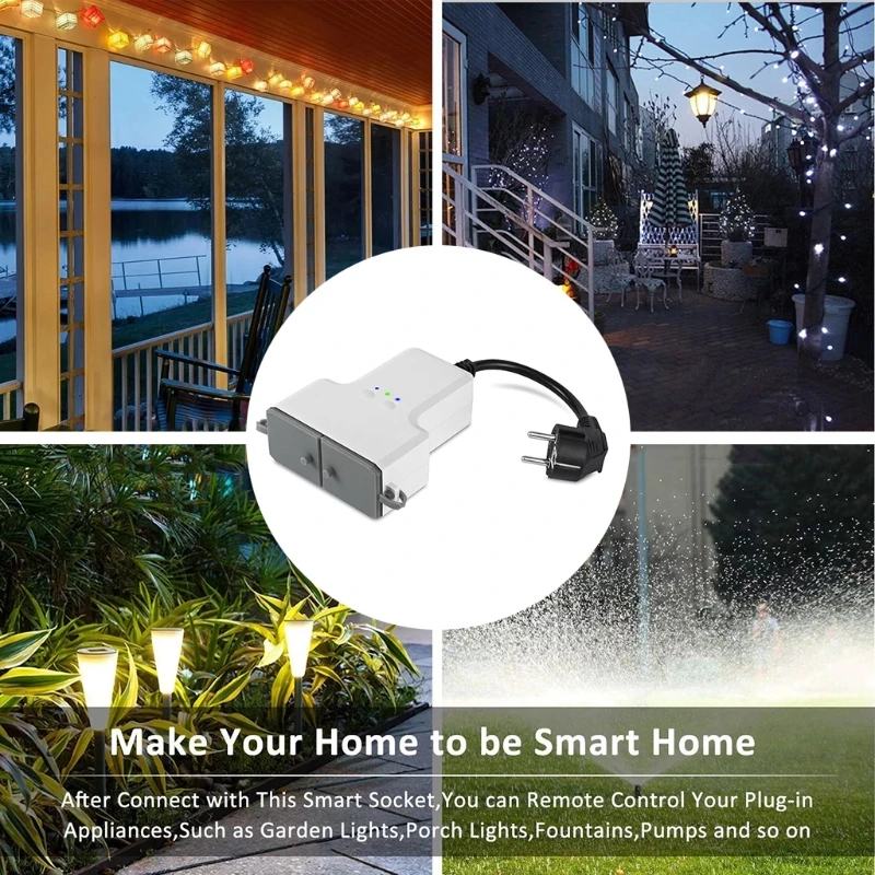 Dual WIFI Smart Waterproof Socket IP44 Outdoor Smart Plug Outlets Tuya Works with Smart Life Home App Timer