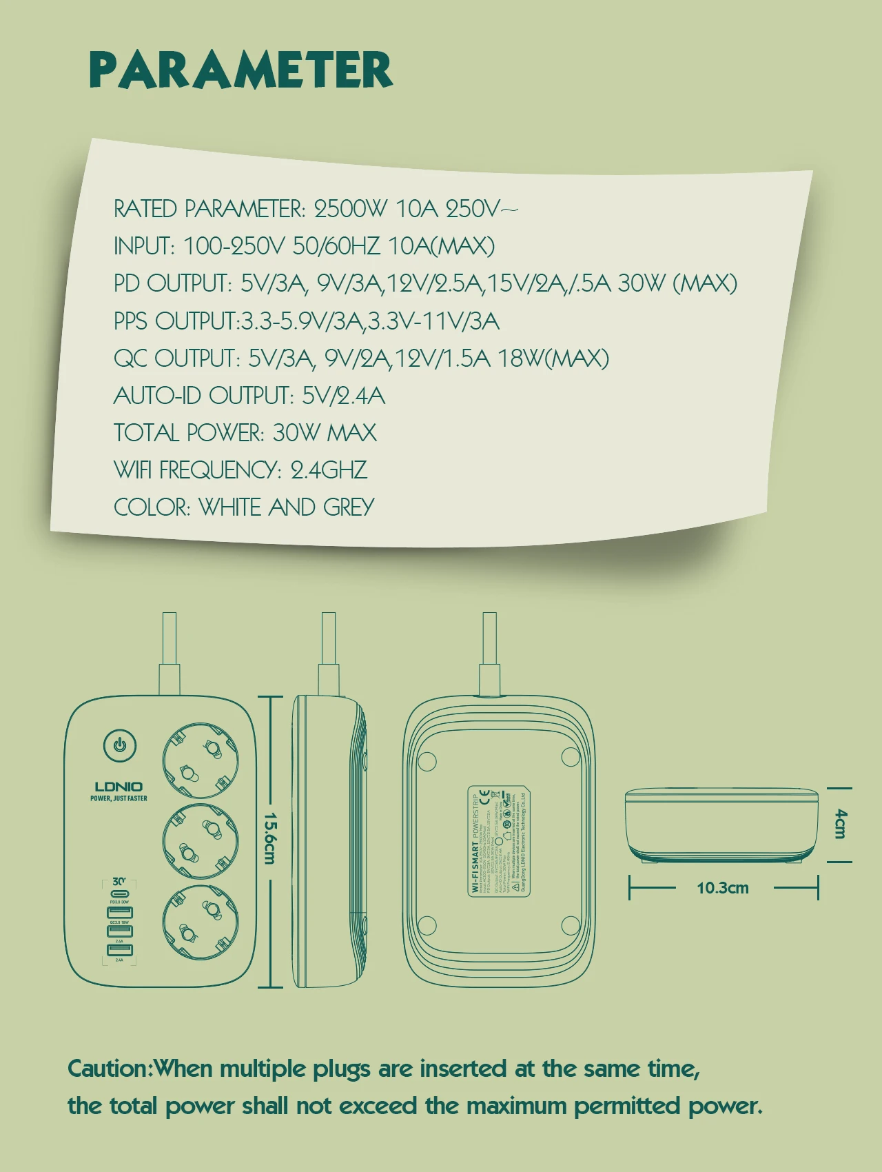 LDNIO Smart Power Strip Tuya WIFI Socket EU Plug Extension Cable Timing Adapter with 3 Plug 3 USB Port Bluetooth Smart Life APP